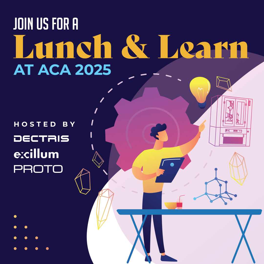 Excillum will be present at the annual meeting of the American Crystallographic Association, ACA, in Lombard, Illinois. Together with our partners Dectris and Proto we will host a “Lunch & Learn” on Sunday, July 20. Come by our booth #8 to pick up your ticket – first come, first served! In addition, we will hold a poster presentation, “Current Status of the Liquid-Metal-Jet X-ray Source Technology”, on Monday, July 21 at 5:30 – 7:30 pm.